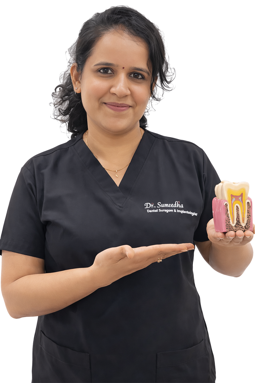 Our team of certified dentists, led by Dr. Sumedha Chithaluru, brings over 14+ years of clinical excellence and hands-on experience in dental implants, root canals, and smile design at the Best Dental Clinic in Kondapur.